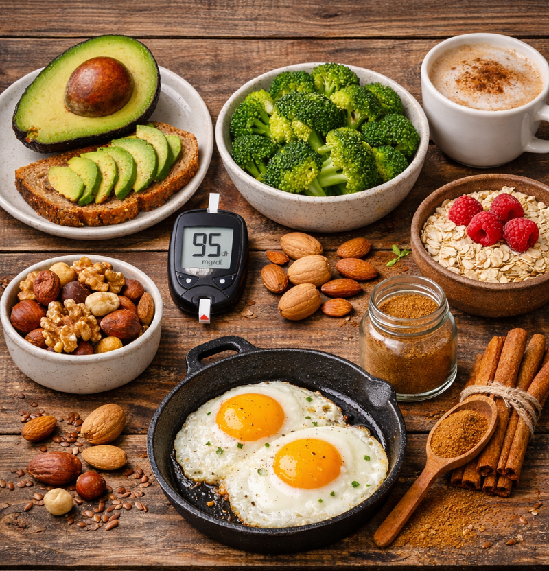 - Huevos: ¡El aliado de las chicas mañaneras! Los huevos son una excelente fuente de proteínas y grasas saludables, lo que los convierte en un desayuno ideal para mantener el azúcar en la sangre controlado durante el día. ¡Así que ponte creativa con tus desayunos y disfruta de huevos revueltos, una tortilla o un delicioso omelette! ¡Tu glucosa estará bajo control y tu sentido del humor estará en alza!