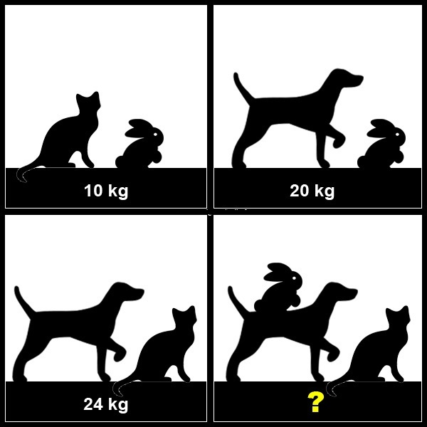 2º imagen: un perro + un conejo = 20kg