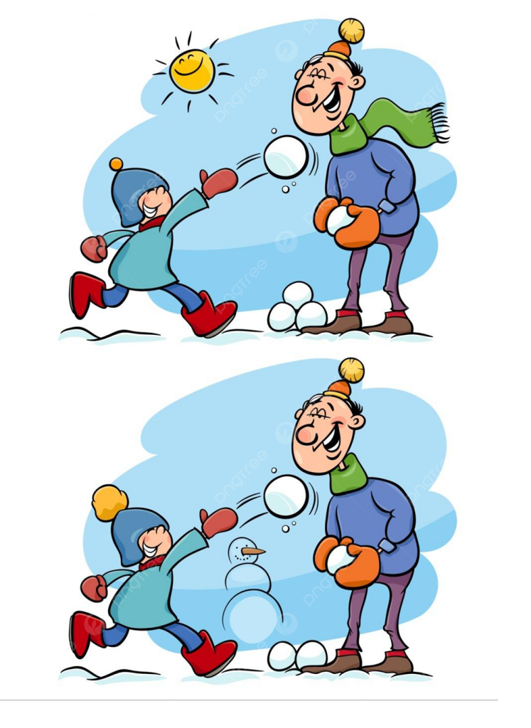 Mira la imagen y concéntrate en los detalles. Padre e hijo pasan una tarde divertida jugando en la nieve, pero… al dibujante se le ocurrió hacer algunos cambios para determinar la capacidad visual de quienes la vieran.