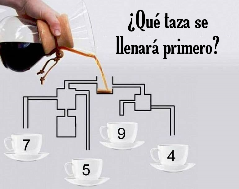 ¿Te atreves a este desafío visual? Mira bien la imagen y analiza qué taza se llenaría primero o intenta otras respuestas.